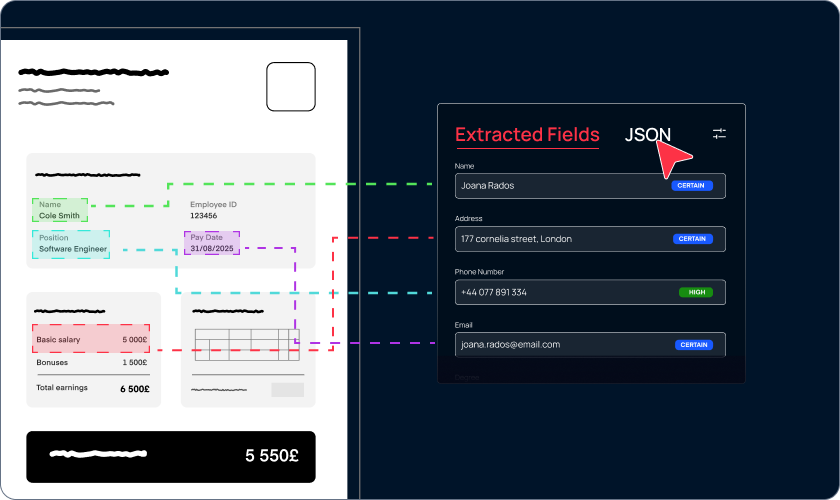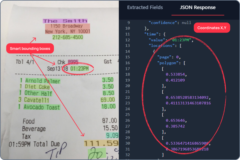 The system flags duplicate invoices instantaneously, acting as a tireless policy agent for your internal control procedures. Configurable approval workflows ensure that if a discrepancy falls outside of custom tolerance rules (such as a variance exceeding $5 or 2%), the exception routes directly to the correct stakeholder. To aid this human review, Mindee's API doesn't just give you the extracted text; it provides the exact X/Y geometric coordinates of where that text lives on the page. This is great for building user interfaces where a user can click a piece of data and see exactly where it was pulled from on the original image.