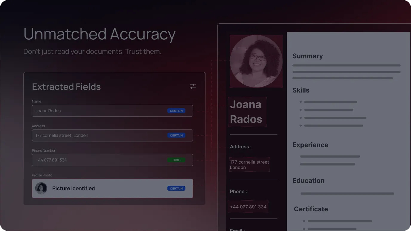 Our AI-driven OCR API provides high-precision data extraction for all document formats, enabling businesses to automate workflows with speed and total reliability.
