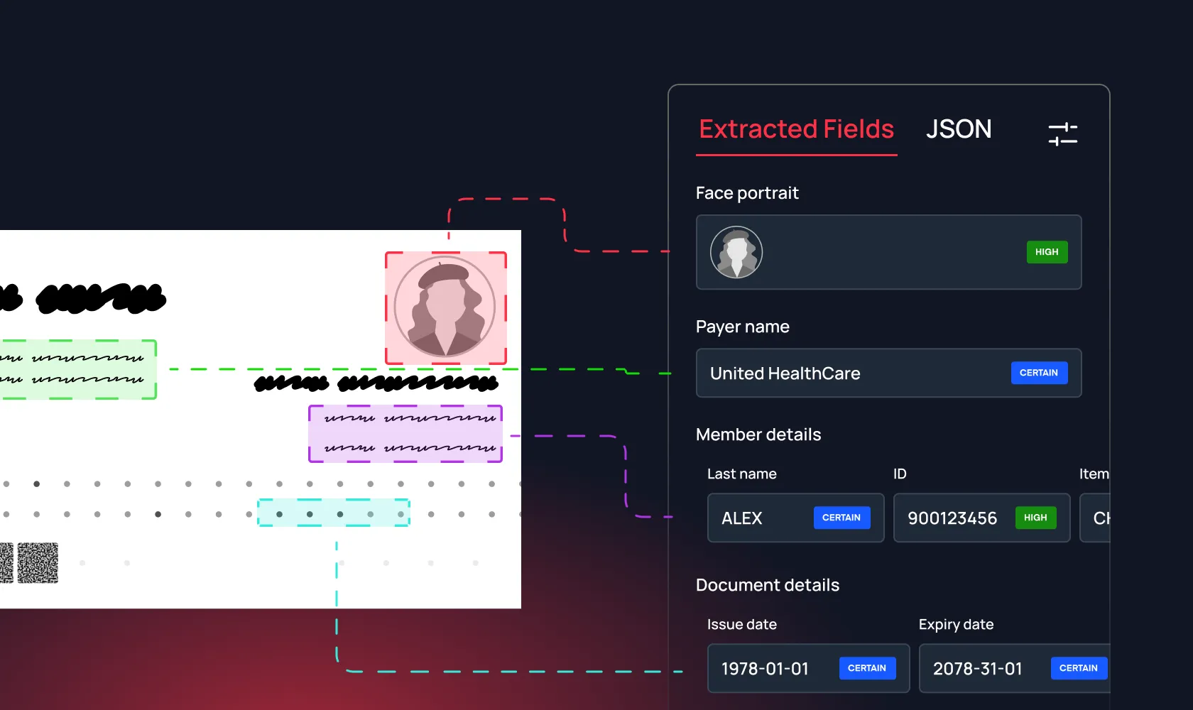 Deep understanding for any health insurance card fields you need, with modern OCR